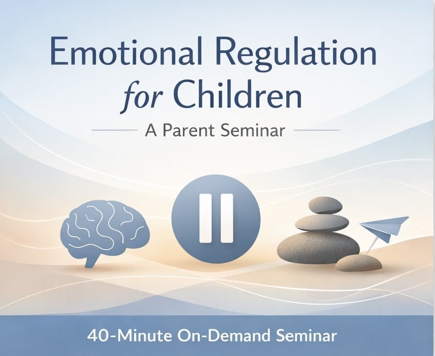 This 40-minute on-demand parenting seminar helps parents understand emotional regulation, why many children struggle with it, and how parents can act as the calm, consistent “pause button” their child’s brain is still developing.